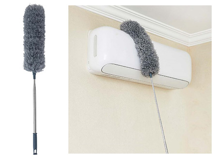 最大280cmまで伸びて、先端が自由に曲がるので、エアコンの上のホコリや、天井と壁の繋ぎ目部分や照明器具の裏側など、普段なかなか届きにくい場所でも、下からさっとお掃除が可能です。また、家具やベッドのすき間など、手間のかかる場所も掃除がラクラク。