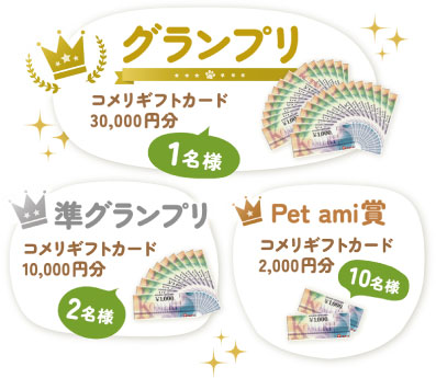 今回のコンテストでは、コメリのオリジナルペットブランド「Pet ami(ペットアミ)」の商品と、みなさんのおうちのペットがかわいく写っている写真を募集します!かわいい”わんちゃん”や”ねこちゃん”などペットたちとの最高の一枚をお待ちしております。