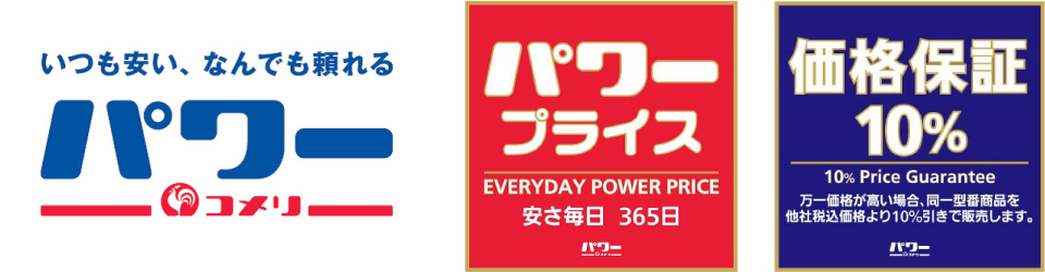 店内すべての商品は、いつでも低価格の「パワープライス」で販売し、万が一価格が高い場合は、同一型番商品を他社税込価格より10%引きで販売いたします。