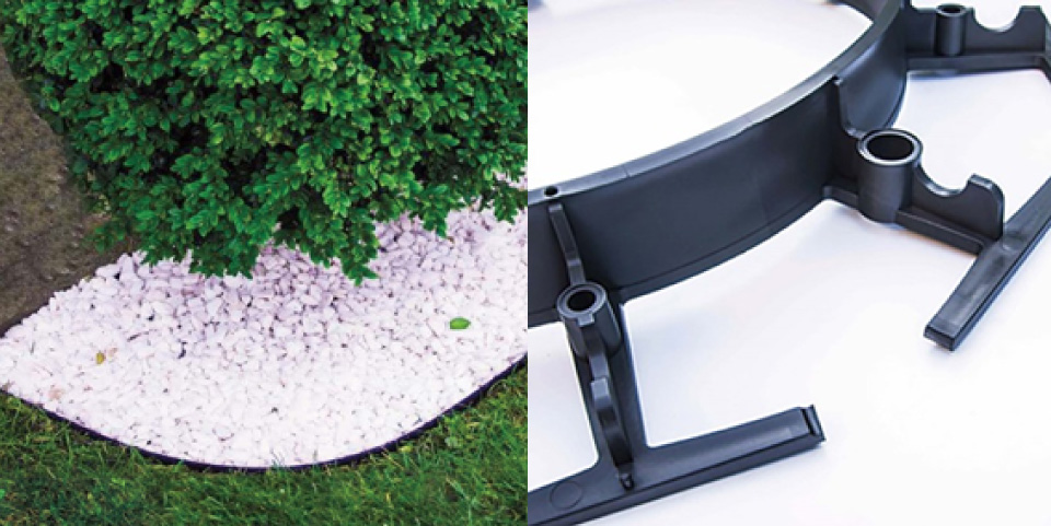 砂利とお庭の境界づくりに使える庭園用埋め込みエッジ材です。ベース部の溝をカットすると自由に曲げられ、端部の差し込み式ジョイント構造で簡単に連結。お庭のデザインの幅を広げます。