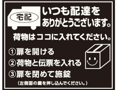 本製品は、使用方法が記載されているマグネットメッセージプレートが1枚付属しています。宅配ボックスの前面に事前に取り付けておくことで、配達業者の方に使用方法を伝えることができます。