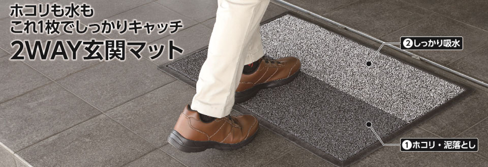 手前のマットでホコリや泥を落とし、奥のマットでしっかり吸水できる2Way仕様。