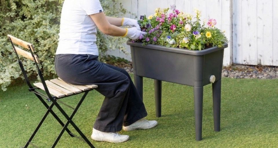 本製品の最大の魅力は、脚付き構造にすることで「身体への優しさ」を実現した点にあります。従来のプランターは、植え付けや水やりのたびに屈んだり深くしゃがみ込んだりする必要があり、ひざや腰への負担が課題となっていました。しかし、本製品は作業位置が高いため、立ったまま、あるいは椅子に座ったままの楽な姿勢でお手入れが可能です。これにより、シニア世代の方はもちろん、長時間ガーデニングを楽しみたい方も、体へのストレスを気にすることなく植物との触れ合いに集中できます。